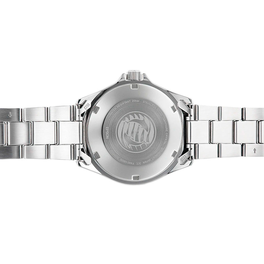 Корпус: Нержавеющая сталь. Сапфировое стекло. Чёрный циферблат и безель, часовые стрелки и метки с люминесцентным покрытием. Безель вращается в одну сторону. Диаметр корпуса 42 мм. Завинчивающаяся заводная головка с защитой. Завинчивающаяся задняя крышка. Водозащита 200 метров.
