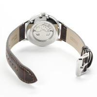 Корпус: Корпус этих часов выполнен из нержавеющей стали. Минеральное стекло. Светлый циферблат выполнен по технологии Sunray (солнечные лучи). Метки в виде штрихов и римских цифр. Рифленая заводная головка. Прозрачная завинчивающаяся задняя крышка. Водозащита 50 метров. Диаметр 42 мм.