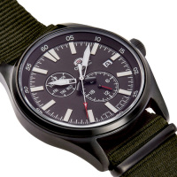 Корпус: Нержавеющая матовая сталь с PVD покрытием чёрного цвета. Тёмный циферблат. Фотолюминесцентный состав на стрелках и на разметке циферблата. Минеральное стекло. Заводная головка с защитой. Завинчивающаяся задняя крышка. Диаметр 42 мм. Водонепроницаемисть 100 м.