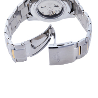 Корпус: Корпус выполнен из нержавеющей стали с частичным PVD покрытием. Белый циферблат. Аппликация часовых индексов, а также стрелки из стали с полировкой до алмазного блеска с покрытием золота. Фотолюминесцентный состав на стрелках и на разметке циферблат. Сапфировое стекло. Завинчивающаяся задняя крышка. Диаметр 40,8 мм. Водонепроницаемисть 100 м.