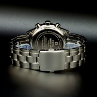 Функции: Центральные часовая и минутная стрелки, маленький секундный индикатор на «3 часах». Дата. Хронограф.