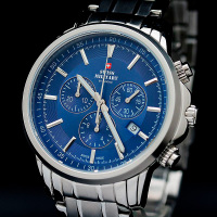 Корпус: Корпус выполнен из нержавеющей стали. Синий циферблат. Стрелки и часовые индексы из полированного металла. Сапфировое стекло. Водонепроницаемость 100 метров. Диаметр 42 мм.