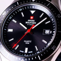 Корпус: Корпус выполнен из нержавеющей стали. Черный циферблат с часовыми индексами в виде штрихов и цифр. Стрелки и часовые индексы с люминесцентным покрытием. Минеральное стекло с сапфировым покрытием. Заводная головка с защитой. Водонепроницаемость 50 метров. Диаметр 42 мм.