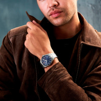Ремешок: Браслет с литыми звеньями из нержавеющей стали, застежка, раскладывающаяся при нажатии на кнопки.