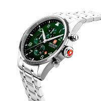 Функции: Центральные часовая и минутная стрелки, маленький секундный индикатор на «6 часах». Апертура даты между «4» и «5 часами». Хронограф с центральной секундной стрелкой, 30-минутным и 10-часовым.