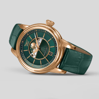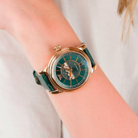 Ремешок: Зелёный ремешок из телячьей кожи с тиснением под аллигатора, классическая застежка.