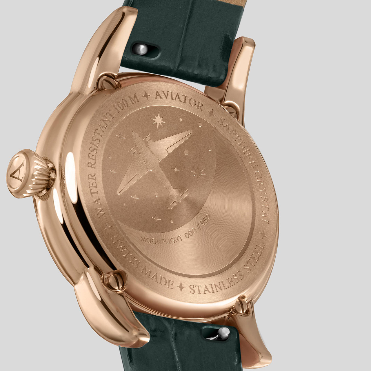 Корпус: Нержавеющая сталь марки 316L с розовым PVD покрытием. Зелёный циферблат. Стрелки и часовые индексы золотистого цвета покрыты люминесцентным составом SuperLuminova. Облака на циферблате украшены перламутровыми вставками. Задняя крышка с гравированным изображением авиалайнера Douglas DC-3 имеет винтовое соединение с корпусом. Рифлёная заводная головка. Сапфировое стекло с антибликовым покрытием. Водонепроницаемость 100 метров. Диаметр 36 мм.