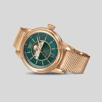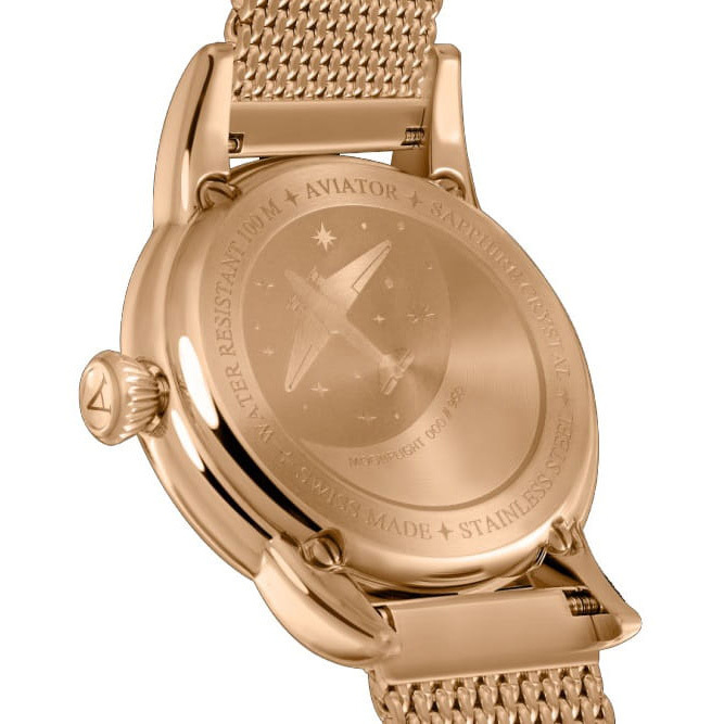 Корпус: Полированная нержавеющая сталь, марки 316L с PVD - покрытием розового золота. Циферблат Sunray зелёного цвета. Облака на циферблате украшены перламутровыми вставками. Накладные часовые индексы и стрелки выполнены из стали с позолотой. Стрелки обработаны люминесцентным покрытием Superluminova — для удобства считывания в темноте. Антибликовое покрытие на сапфировом стекле позволяет с легкостью узнать время даже при ярком солнце. Задняя крышка с гравированным изображением авиалайнера Douglas DC-3 имеет винтовое соединение с корпусом. Рифлёная заводная головка. Диаметр: 36 мм. Водонепроницаемость: 100 метров.