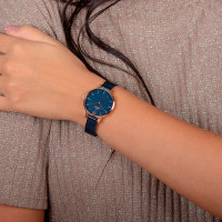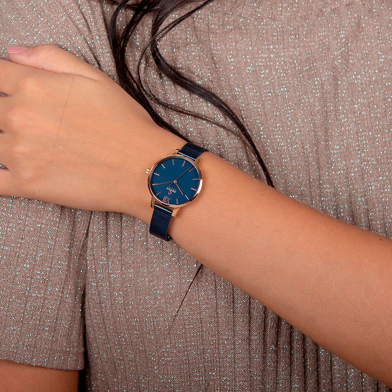 Ремешок: Стальной браслет с синим покрытием выполнен в технике миланского плетения, раскладная застежка.