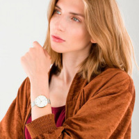 Корпус: Круглый корпус выполнен из матовой нержавеющей стали с IP покрытием цвета желтого золота. Белый циферблат. Минеральное стекло устойчивое к мелким механическим повреждениям. Диаметр 36 мм. Водонепроницаемость 30 бар (30 м).