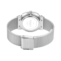 Ремешок: Стильный браслет из нержавеющей стали, выполненный в технике миланского плетения, подчеркивает утонченность дизайна и обеспечивает надежную фиксацию на руке благодаря удобной раскладной застежке. Застежка с системой блокировки.