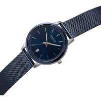 Корпус: Корпус выполнен из нержавеющей стали с частичным синим IP покрытием по безелю. Синий циферблат с серебристыми стрелками. Прочное минеральное стекло устойчивое к мелким механическим повреждениям. Водозащита: 30 м. Диаметр: 34 мм.