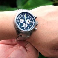 Корпус: Корпус модели выполнен из высококачественной стали с повышенной устойчивостью к коррозии марки 316L. Циферблат синего цвета, чёрные стрелки. Цифры в стиле “пилот” выполнены методом печати. Стрелки и метки с покрытием SuperLuminova. Сапфировое стекло с антибликовым покрытием. Завинчивающаяся заводная головка. Диаметр: 45 мм. Водозащита: 100 метров.