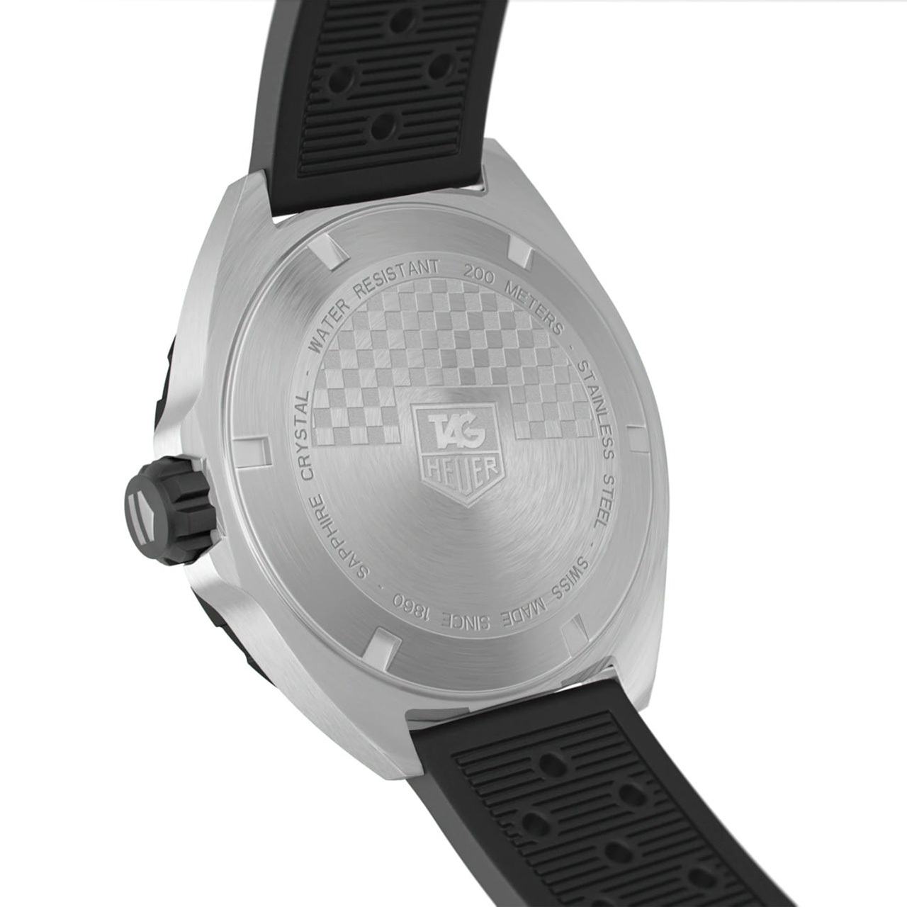Ремешок: Каучуковый ремешок черного цвета с перфорированием, классическая застежка пряжка из нерж. стали украшена логотипом TAG Heuer.