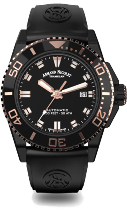 Эти 44-миллиметровые часы имеют толщину 13,0 мм (включая сапфировое стекло). Значимым аспектом новой модели является водонепроницаемость 30 АТМ благодаря толстой привинченной спинке с типичным рисунком рыбы Armand Nicolet и завинченной заводной головке, покрытой удобной резиновой застежкой.