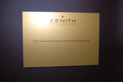 Часовые бренды LMVH — Bvlgari, Hublot, Zenith и TAG Heuer,— теперь собрались в одном месте: каждая марка получила свой собственный стенд, оформленный так, чтобы лучше подчеркнуть ее историю. Например, у TAG Heuer запомнились высокие этажи.  Стенд Zenith был затянут в благородные серые цвета – все спокойно, светло и достойно, словно в готовом музее. Впрочем, от музея здесь было не только цветовое решение – одна стена была превращена в «летопись достижений» бренда.  На ней разместились всевозможные сертификаты, патенты и изобретения Zenith за всю историю. Всего 2 333 награды в хронометрии. Это очень уместно в свете концепции развития марки: Zenith в настоящий момент увлечен выпуском различных пилотских часов, созданных в соответствии с дизайном пятидесятилетней давности.
