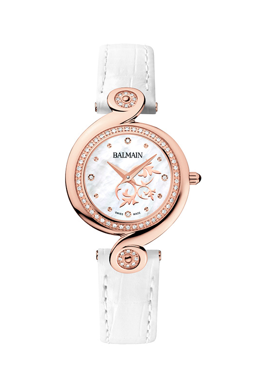 Наряду с цветом, еще одна заметная тенденция – это доминанта часов на браслете. Один из самых последовательных в этом отношении – бренд Balmain. Закручивающийся скрипичный завиток вдохновил дизайнеров на создание часов Kerria, названных в честь прекрасного японского кустарника. Индивидуальная особенность моделей из коллекции - уникальная текучая форма, гармоничное единство корпуса и браслета, а центральное крепление своего рода визитная карточка престижного бренда.