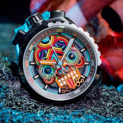 В мексиканской культуре День мертвых (Día de los Muertos) — это праздник, символизирующий не столько смерть, сколько перерождение. Мексиканцы верят, что после физической смерти путь человека продолжается в иной форме, а память о нем живет, пока его вспоминают близкие. День мертвых — это яркий карнавал с символикой черепов, олицетворяющих бесконечность жизни и связи между мирами. Черепа, украшенные узорами и яркими цветами, становятся центральными элементами не только в карнавальных костюмах, но и в коллекциях часов BOMBERG.