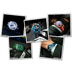 Вдохновлённые автогонками, часы поддерживаются настоящими спортсменами: от GT4-пилота Рубена дель Сарте до мексиканского NASCAR-гонщика Джейка Косио. Эти амбассадоры подчеркивают связь BOMBERG с миром высоких скоростей.