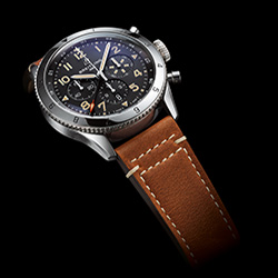 Одна из особенностей моделей из серии Super AVI – крупные, прекрасно читаемые арабские цифры на циферблате и безеле. На массивном корпусе диаметром 46 мм напротив метки «3 часа» выделяется крупная заводная головка. Рифление на безеле обеспечивает надежный захват, а отстрочка на ремешках из телячьей кожи напоминает отделку старинного летного снаряжения.