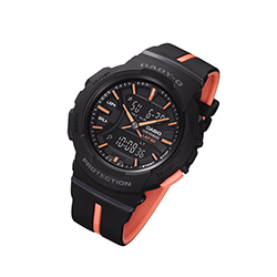 Разработанные специально для бега, японские часы BABY-G от Casio выполнены в спортивном стиле. Их яркая цветовая гамма отлично гармонирует со спортивной одеждой. Часы представлены в четырех цветовых решениях: BGA-240L-7A (белый – лаймово-зеленый), BGA-240L-1A (черный – оранжевый), BGA-240L-2A2 (небесно-голубой – синий), BGA-240L-2A1 (синий – розовый). Новые модели оснащены яркими двухцветными браслетами из полимерного материала. При этом на внешней части есть центральная и боковые вставки второго цвета, который присутствует во внутренней части браслета. Такие декоративные элементы еще больше усиливают спортивный характер моделей, как вокруг циферблата это делает и цветное кольцо.