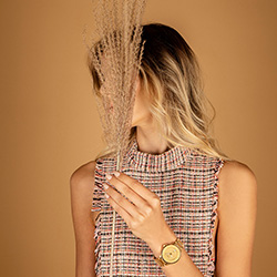 - Циферблат цвета желтого золота с безелем цвета желтого золота.