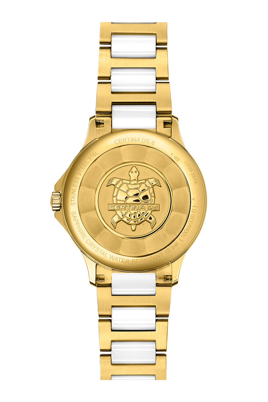 Две новые модели DS-6 Lady с PVD-покрытием цвета желтого золота доступны у официальных дилеров Certina по всему миру.