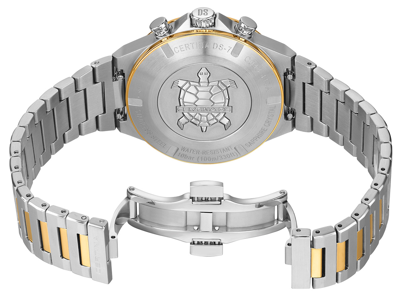 Все часы из коллекции DS-7 отличаются надежностью и прочностью. Залогом этого является система двойной надежности, аббревиатуру которой, как и все часы Certina, они с гордостью несут в своем названии. Она обладает рядом особенностей, таких как, заводная головка с системой защиты, что обеспечивает моделям DS-7 водонепроницаемость до 10 бар (100 м). Таким образом, новые модели доказывают, что сочетают в себе и швейцарскую точность хода, и модный дизайн, и спортивную функциональность!