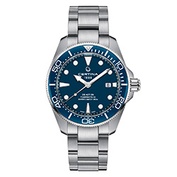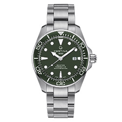 Модель DS Action Diver в стальном корпусе диаметром 43 мм – одна из самых популярных в коллекции Certina. Теперь марка выпускает обновленную версию, верную характеру оригинала, но с усовершенствованными элементами. Так, часы имеют однонаправленно вращающийся безель из полированной черной керамики, известной своей устойчивостью к царапинам. Цветной циферблат украшают выразительные стрелки и индексы с покрытием Super-LumiNova®, обеспечивающие улучшенную считываемость показаний в условиях пониженной освещенности. Часы дополнены браслетом из стали со встроенным удлинением для дайвинга. Модель представлена в синем и зеленом цветах, в исполнении из титана или в двухцветном исполнении.