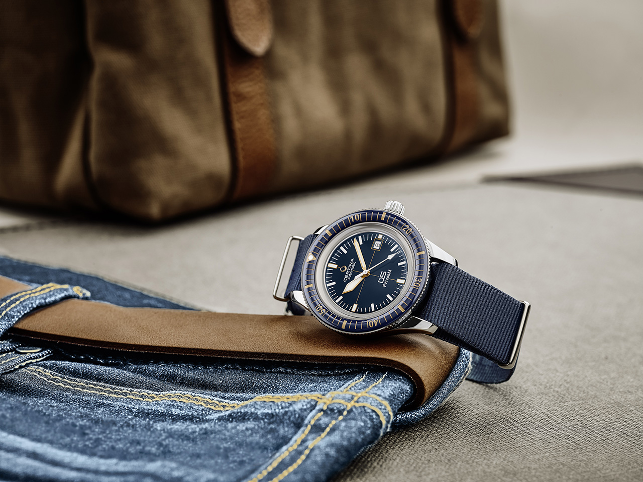 Ремешок: серо-синий текстильный ремешок NATO с классической застежкой.