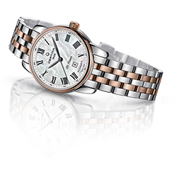 Женственный образ часов Certina подчеркивает каждая деталь: безель с PVD-покрытием из розового золота, римские цифры, заостренные часовая и минутная стрелки. Использование яркого перламутра на циферблате придает свежесть и очарование. Сбалансированность дизайна создает контраст белого перламутра и черных римских цифр, никелированных стрелок, защищенных сапфировым стеклом с двусторонним антибликовым покрытием. Обладательница этого элегантного аксессуара предстает истинной леди, которая умело сочетает вечную классику и современный стиль. Изящный корпус часов диаметром 29 мм выполнен из нержавеющей стали 316L. Модель DS Podium Lady Automatic имеет полированный пятирядный браслет с двумя линиями звеньев с PVD-покрытием и складной кнопочной застежкой-«бабочкой». Окошко даты, расположенное в положении «6 часов», обеспечивает максимальное удобство просмотра времени. Внутри часы оснащены высококачественным швейцарским автоматическим механизмом ETA нового поколения. Обладают водонепроницаемостью до 10 бар (глубины 100 м). На заводной головке размещены буквы DS (фирменная концепция DS Double Security – Двойная Надежность), подтверждающие повышенную надежность часов. В коллекции представлено несколько вариантов исполнении, что дает возможность каждой женщине подобрать подходящую модель.