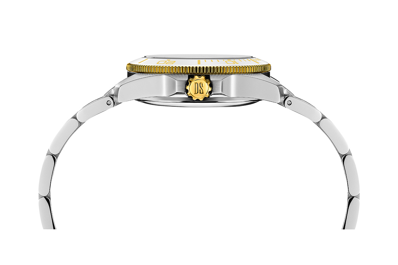 Круглый корпус из нержавеющей стали с однонаправленно вращающимся безелем с керамическими вставками подчеркивает динамичный характер модели. Лаконичный циферблат с покрытием Super-LumiNova® на стрелках и индексах выполнен в современном дизайне. Суперэлегантная двухцветная версия представлена в черном или белом перламутре, дополненном сияющими бриллиантовыми индексами и акцентными деталями цвета желтого золота. Также доступны модели с белым, синим или черным лакированным циферблатом в корпусе из нержавеющей стали.