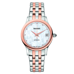 10. Classic R Lady Automatic B3998.33.86: стальной корпус с PVD-покрытием розовым золотом, стальной браслет с PVD-покрытием розовым золотом чётных звеньев; белый перламутровый циферблат с одиннадцатью бриллиантами «Wesselton» в виде условных индексов. |