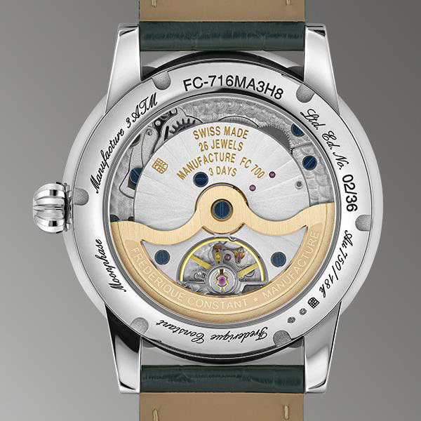 Технически модель была существенно улучшена. Новый механизм FC-716, разработанный внутри компании, оснащён эксклюзивной барабанной системой, которая почти вдвое увеличила запас хода — с 38 до 72 часов. Это делает часы не только стильными, но и крайне надёжными в повседневном использовании. Функциональность включает отображение времени, фаз Луны и даты, а дизайн остаётся верным канонам классической швейцарской эстетики.
