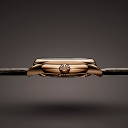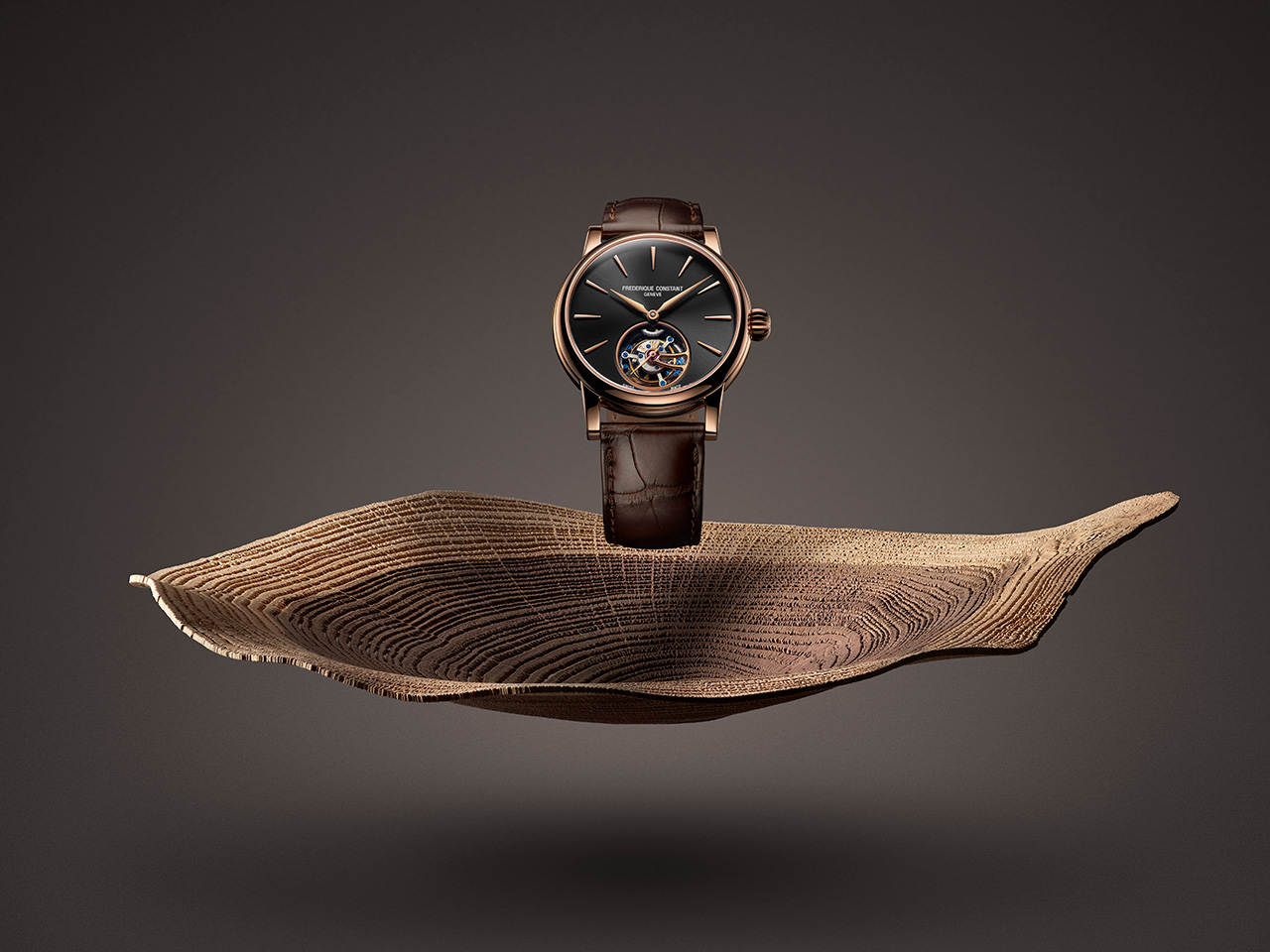 Новая модель Classic Tourbillon Manufacture 2023года обладает более изысканным дизайном. Вместо апертуры турбийона в форме "запятой", характерной для этих модели с 2008 года, новая версия представляет собой идеальный круг. Лаконичность циферблата подчеркнута тщательно отполированными накладными индексами и золотыми стрелками. Тонкие и удлиненные, они словно парят над угольно-серым циферблатом, который украшен узором «солнечные лучи». Classic Tourbillon Manufacture 2023 года поставляются на темно-коричневом матовом кожаном ремешке с раскладывающейся застежкой, которая украшена гербом Frederique Constant.