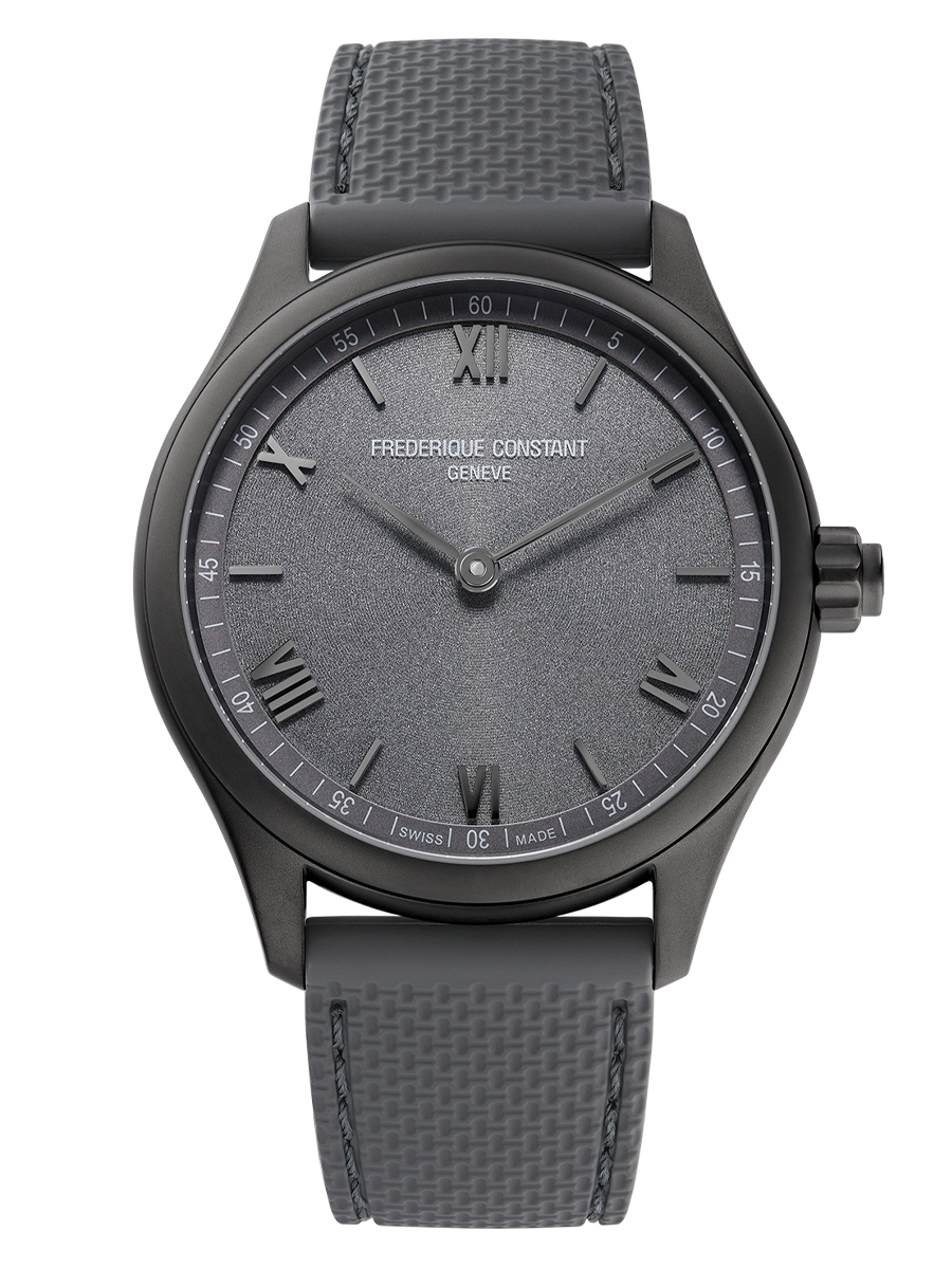 Чтобы удовлетворить потребности коллекционеров и ценителей часов из золота и стали, Frederique Constant предлагает две новые модели Smartwatch Gents Vitality. Первая имеет изысканный корпус с покрытием из розового золота. Он дополнен черным циферблатом, гармонично объединившим традиции и современность. Люминесцентные стрелки и граненые накладные индексы также имеют покрытие из розового золота. Текстурированный каучуковый ремешок, оснащающий все новые модели, подчеркивает особую эстетику этих часов в стиле «спорт-шик». Все, кроме одной.