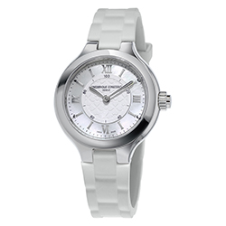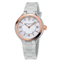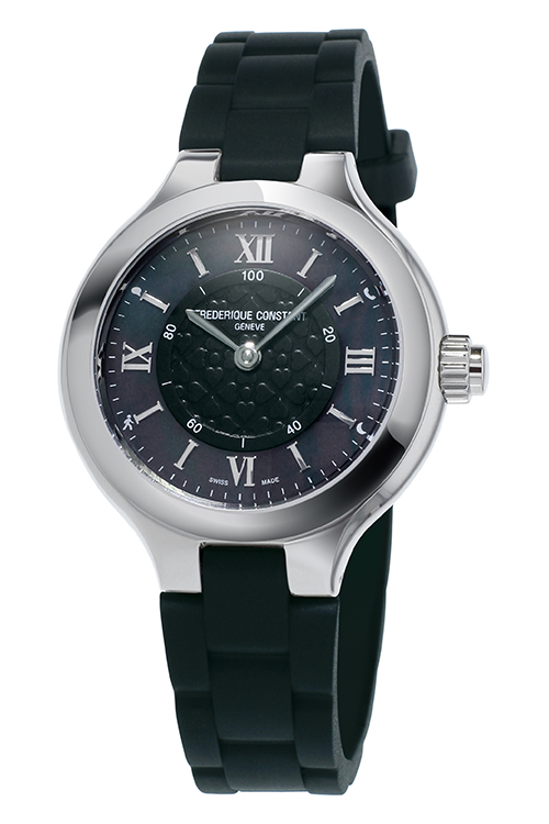 Часы отличаются элегантностью и женственностью, оснащены подключаемым модулем функций. Три новые женские модели часов Frederique Constant имеют изящно украшенные циферблаты с гильошированной центральной частью, перламутровой внешней шкалой и накладными римскими цифрами. Часы с корпусом диаметром 34 мм изготовлены в двух вариантах: с полностью стальным безелем и стальным с покрытием из розового золота.