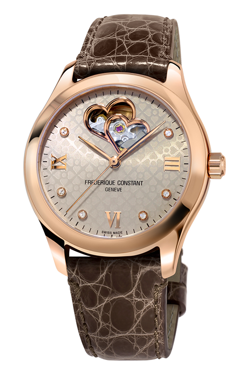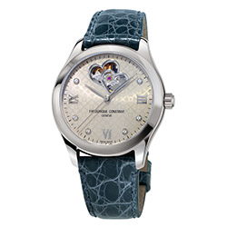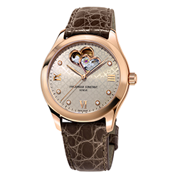 Фирменное окошко Heart Beat уже несколько лет является символом успеха марки Frederique Constant. Это яркий пример нестандартного подхода бренда к отображению времени. Декоративное окошко с выпуклым сапфировым стеклом позволяет в деталях рассмотреть механизм часов. Находящееся в положении «12 часов», оно отлично гармонирует с отделкой циферблата «солнечные лучи». Бриллианты и римские цифры придают особое великолепие циферблатам Heart Beat, выдержанным в четырех новых оттенках. При каждом взгляде на циферблат наслаждаешься великолепием дизайна и мастерским исполнением часов.