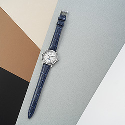 Новые версии комплектуются синим кожаным ремешком с прострочкой в тон, оснащенным системой быстрой смены Quick Change, или элегантным гибким стальным браслетом с пятью рядами полированных звеньев, который обеспечивает идеальную посадку часов на запястье.