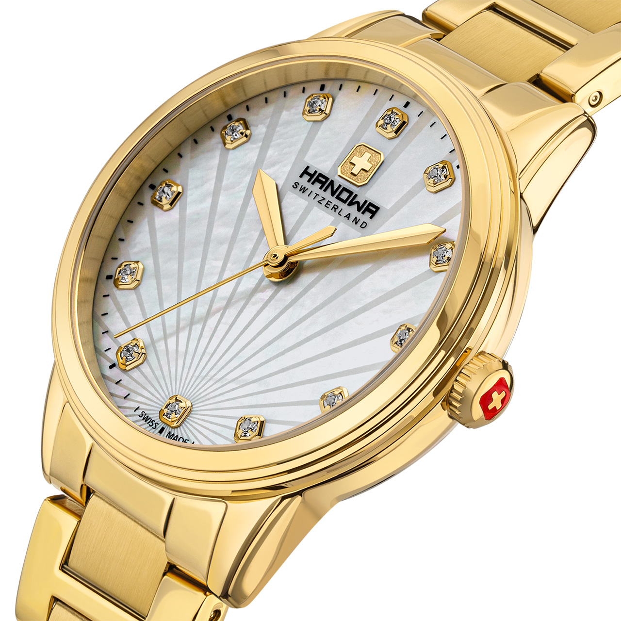 Модель ref. HAWLA0002010 в золотисто-черном дизайне на черном кожаном ремешке, гарантирует особую привлекательность и комфорт. Часы ref. HAWLG0002004 на стальном браслете с перламутровым циферблатом- сияют нежной элегантностью. Бренд HANOWA, родившийся в Швейцарии, представляет часы, оснащен механизмами ведущих швейцарских производителей. Сочетание высококачественных материалов- нержавеющая сталь и натуральная кожа, в свежих цветовых решениях, позволяет комбинировать часы с любым гардеробом!