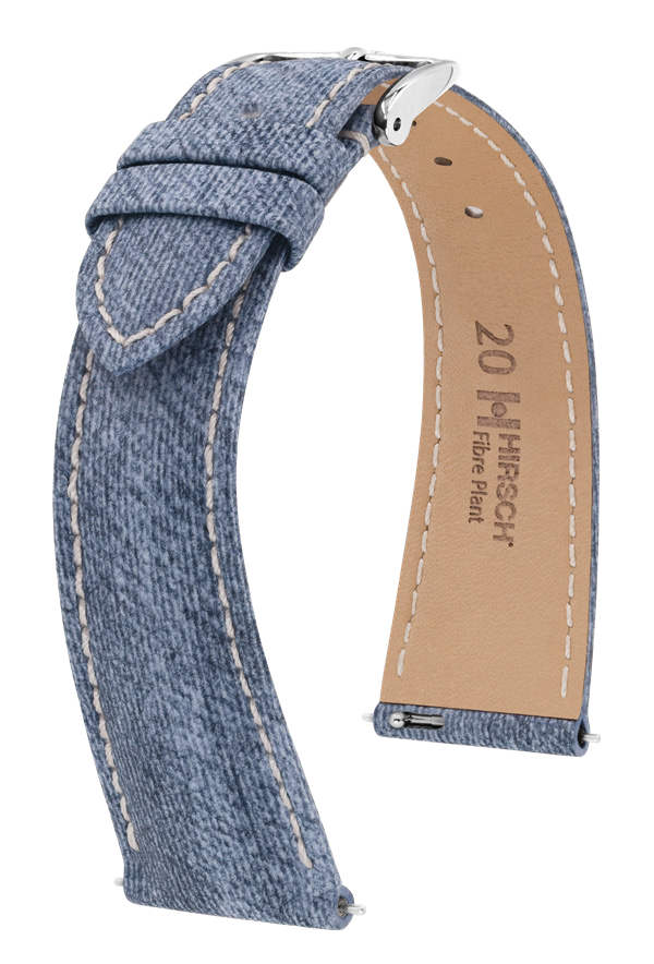 Контрастная прострочка, классическая пряжка HIRSCH придают ремешку изысканный и универсальный вид. Два цвета — тёмно-синий и джинсовый — делают модель уместной как с классическими, так и с повседневными часами. Fibre Plant — это выбор в пользу ответственного потребления без компромиссов в дизайне и удобстве.