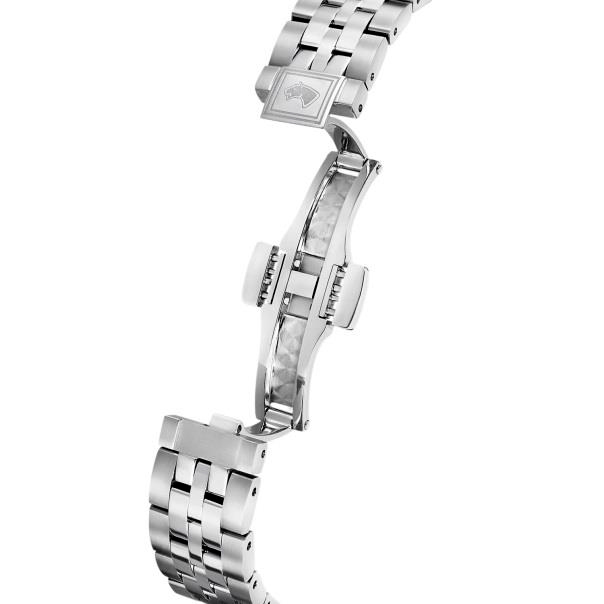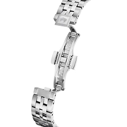 Спокойная сине-стальная палитра делает модель универсальной: она уместна как на деловой встрече, так и на вечернем приеме. Благодаря 34-миллиметровому корпусу и утонченному браслету из стали с застежкой-бабочкой, часы идеально ложатся на запястье и подчеркивают его изящество.