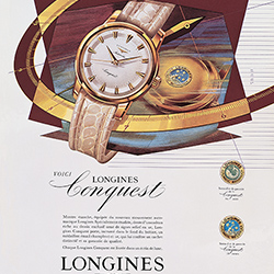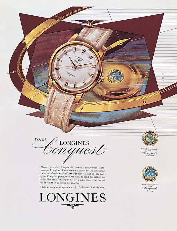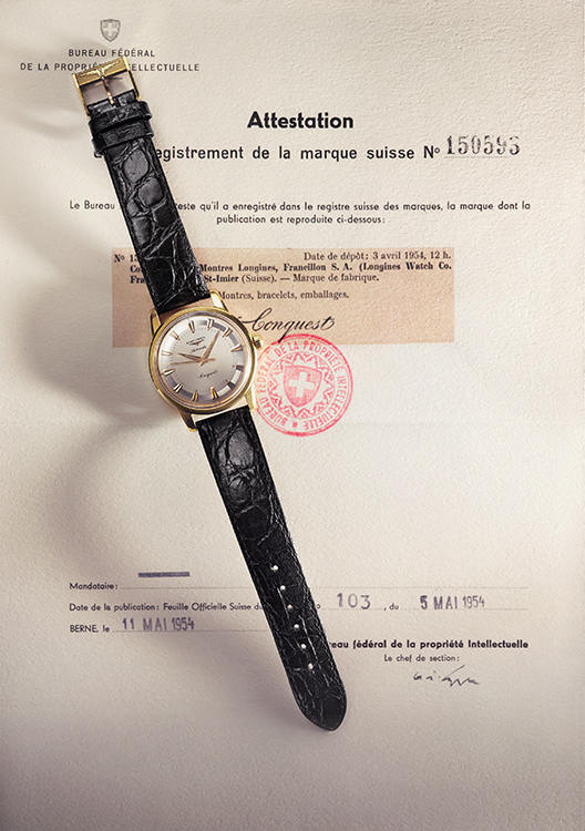 5 мая 1954 года компания «Longines» в Швейцарском Федеральном Бюро Интеллектуальной Собственности осуществила регистрацию нового наименования «Conquest», которое положило начало популярной ныне коллекции и стало началом новой стратегии компании, основанной на выпуске коллекционных моделей. Своим оригинальным дизайном и высокой точностью часы «Conquest» достаточно быстро покорили публику, ещё больше укрепив авторитет марки «Longines», которая, к тому времени, являлась синонимом многих великих хронометрических достижений, а также олимпийских рекордов начиная с Зимней Олимпиады в Осло 1952 года.