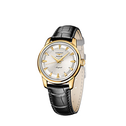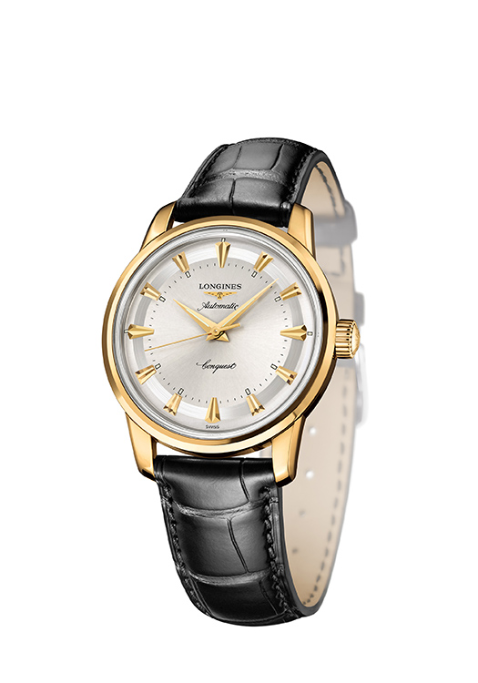 3. Longines Conquest Heritage 1954-2014 – L1.611.6.70.4 – в корпусе из жёлтого золота с серебристым циферблатом, стрелками и индексами цвета жёлтого золота, лимитированная серия – 60 экземпляров.