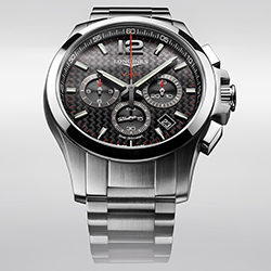 Часы в корпусе из нержавеющей стали Ø42 мм оснащены хронографом, 30-минутный счетчик расположен на отметке «3 часа», 12 часовой на отметке «9 часов» и 60-секундный счетчик расположен в центре. Карбоновый циферблат часов отображает часы, минуты и секунды. Финальный штрих к портрету этой модели – стальной браслет с надежной складной застежкой.