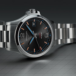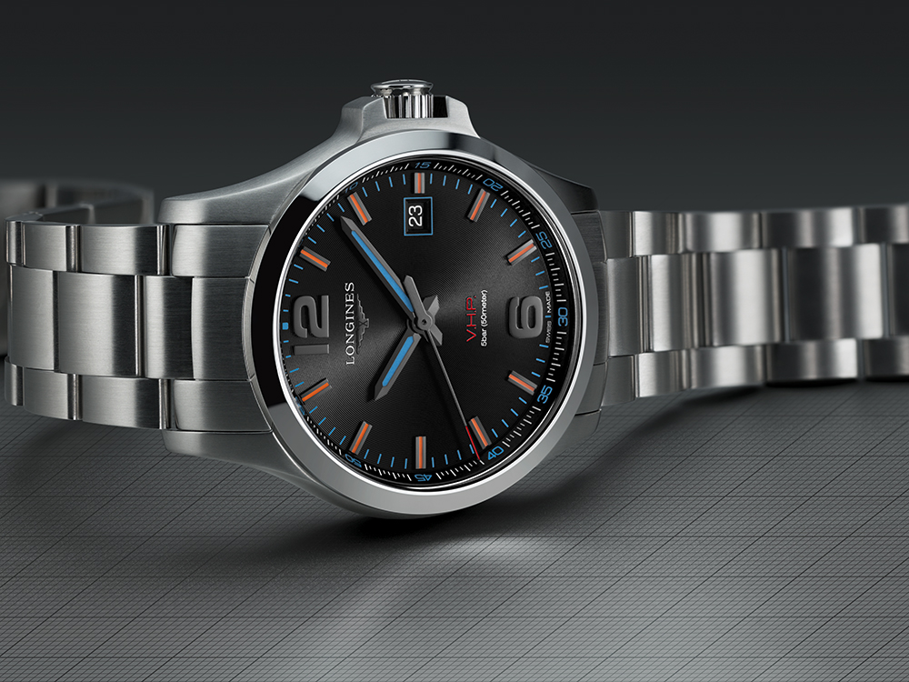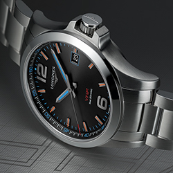Часы Conquest V.H.P.* — новое достижение в области кварцевых часов — сочетают в себе высокую точность совершенного механизма, спортивный внешний вид и элегантность, характерные для марки Longines. При создании модели Conquest V.H.P. производитель часов применил технологии, в которых является признанным экспертом. Разработки в области хронометража прославили бренд еще в 80-е годы прошлого столетия.