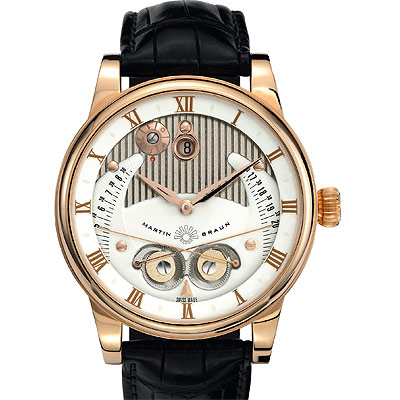 Каждый знаток часовой механики знает, чем прославился скромный, молодой и никому не известный немецкий мастер из Шварцвальда. В 2000 году он представил свою первую модель - часы "Eos" (Эос - Аврора - богиня утренней зари), с индикацией заката и восхода солнца, работа над которыми, продолжалась более пяти лет. Эта модель - две скрещенные асимметричные стрелки, рассекающие циферблат и по сей день является культовой моделью Martin Braun и по-прежнему не выходит из моды. Модуль часов, претерпев некоторые существенные изменения, сегодня используется в ряде других коллекций Martin Braun.