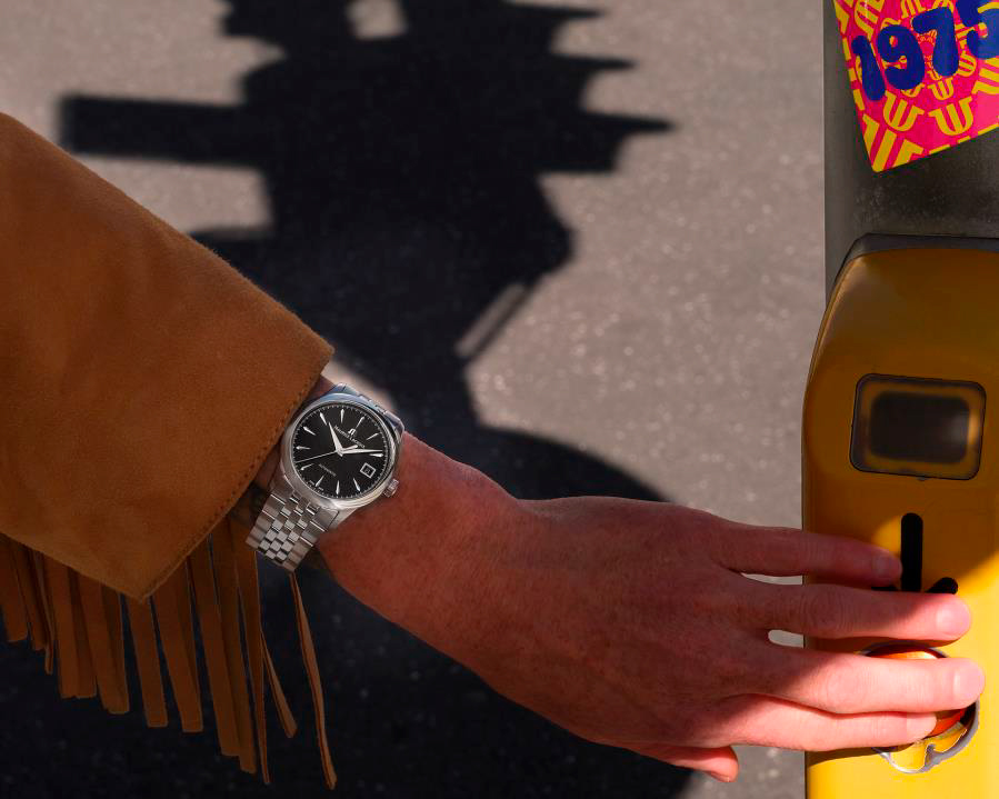 Модель 1975 стала настоящим гимном классике с оттенком современного городского духа. Тщательно проработанный дизайн, от отделки корпуса до визуальной структуры циферблата, подчёркивает внимание к деталям. Обработка в стиле «солнечные лучи», фирменные накладные метки и элегантные стрелки делают эти часы визуально яркими и легко читаемыми. В моделях с автоматическим механизмом окошко даты расположено на отметке «3 часа», в кварцевых — на «6 часов».