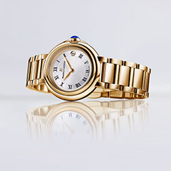 4. Модель FA1004-PVP06-110-1: стальной корпус, диаметром 32 мм, с PVD-покрытием розовым золотом; серебристый циферблат с римскими цифрами и тремя позолоченными стрелками; стальной браслет с розовой позолотой. | |