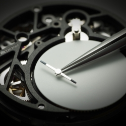 обеспечить стабильную передачу энергии. Колеса были созданы с применением технологии «LiGA» – это революционный метод создания деталей микроскопических размеров на основе соединения техники фотолитографии и формовки электроосаждением. Но покупателю все эти сложные слова мало что дают, куда сильнее магнетический эффект работы механизма: квадратный диск, имеющий специально разработанную форму, входит в идеальное сцепление с колесом в виде трилистника, приводится им в движение и осуществляет передачу энергии с той же точностью, что и зубчатые зацепления круглых колес. Причем детали вращаются без остановки, напоминая о непрерывном течении времени.